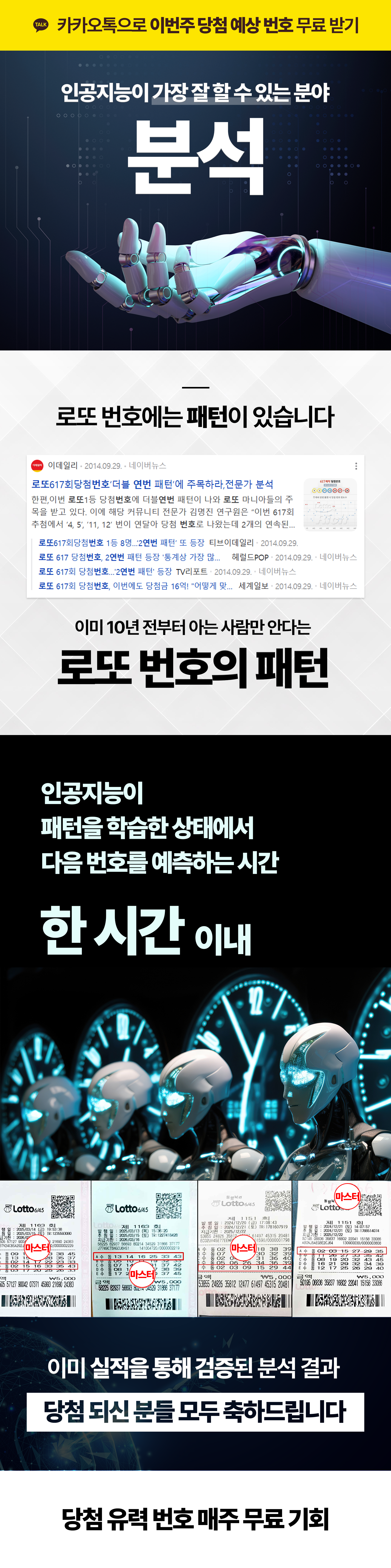 과도한 로또 복권은 사행성 중독으로 인한 경제적 부담을 불러올 수 있습니다. 청소년은 복권을 구매하거나 당첨금을 수령할 수 없습니다. 업체명: 행복마스터 사업자등록번호: 121-63-10566 대표자: 최명덕 연락처: [email protected]